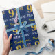 This wrapping paper design features a message like "First-Name’s 91st BIRTHDAY!", with the "91st" having a faux/imitation gold-like colour appearance. The name can be customised, and the background is coloured blue. It could perhaps be used when wrapping gifts being given for somebody’s ninety first birthday. [~Z0000181]