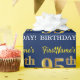 This wrapping paper design features a message like "FirstName’s 95th BIRTHDAY!", with the "95th" having a faux/imitation gold-like colour appearance. The name can be personalised, and the background is coloured blue. It could perhaps be used when wrapping gifts being given for somebody’s ninety fifth birthday. [~Z0000181]