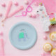 A cute design featuring a blue indian elephant with a blanket and head piece on. Add name as desired.