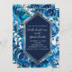 Blue Indigo Floral Flowers Elegant Chic Wedding Invitation