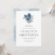Blue indigo watercolor floral bouquet wedding invitation