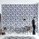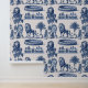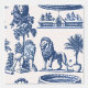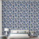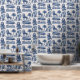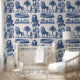 This luxurious wallpaper features a set of lions and bushes resembling savannah and made in blue-ink style.