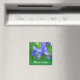 blue irises and green leaves. this fresh magnet is a reminder that you should keep your foods fresh and don't buy too much at one time! :)