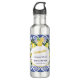 This modern elegant and beautiful lemon fresh bridal shower gift Stainless Steel Water Bottle design features a vibrant watercolor Italian citrus lemons and delicate pink roses, complimented by intricate Mediterranean Italian blue tiles pattern with script " Limoncello" yellow gold blue lettering stylish typography. Personalised name gift ideas for bridal shower party, wedding Party, bridesmaid proposal gift , bachelorette party and more. Easily customisable and editable text, you can change all text, fonts and colours