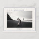 Personalised simple navy blue Stylish Modern Cool ivory Photo Wedding Thank You Photo Postcards featuring elegant and minimalist sans-serif font, custom photo, couple names, sender's address, wedding date and location, website link for invitation to follow, fully customisable background and a bold, cool graphic black border (optional). Customise your thank you card choosing different image backgrounds on front and back, or leave this classic and clean white colour. You can choose a solid custom background colour too. A simple and cool template fully customisable perfect for your wedding thanks, engagement announcement, bridal shower, thank you cards and more. Create your own sophisticated card for any unique celebration.