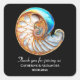 Add a bold and elegant finishing touch to your celebration with this striking square wedding thank you sticker. Featuring a pearlised conch shell in rich blue and soft ivory tones with faux gold accents, the design sits against a deep black background that creates dramatic contrast and a refined, high-end look.