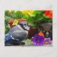 Blue Jay and Flowers Postcard