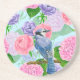 Watercolor pattern made of a blue jay and various flowers- hydrangea, peony, and anemone.