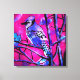 Blue Jay Bird on Tree Branch Pink Abstract Art Canvas Print