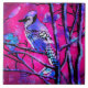 Blue Jay Bird on Tree Branch Pink Abstract Art Tile