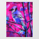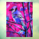 Blue Jay Bird on Tree Branch Pink Abstract Art