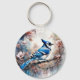 Blue Jay Cherry Blossoms watercolor Key Ring