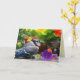 This colourful Mother's Day card features a blue jay who has landed on a porch deck surrounded by flowers. The blue, grey, white and black coloration of the bird is set off by a riot of colour. There is a decorative teapot with orange and yellow nasturtiums and a purple petunia. Green leaves complete this kaleidoscope of colours. You can customise the text to suit your needs.