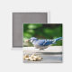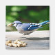 A photo of a Blue Jay on my picnic table getting a peanut.