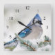 Blue Jay in Blue Atlas Cedar Square Wall Clock