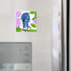 Original fine art painting of a Blue Jay in Hydrangea flowers by artist Carolyn McFann of Two Purring Cats Studio printed on a quality magnet for wild bird fans.