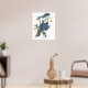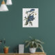 This print shows three Blue Jays, two females and one male. They have been stealing eggs from the nest of another bird and are perched in a tree eating the eggs. The blue jay is one of the more common birds to backyards but is a bit of a bother to the other nesting birds in the yard.