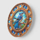 Experience a masterwork of light and texture with the Blue Jay Stained Glass Heritage clock. This prestigious timepiece features a high-definition graphic centred on a majestic blue jay perched within a vibrant stained-glass window design. The backdrop showcases sunburst patterns in brilliant azure and soft white, while the bird is rendered with lifelike plumage detail. The artwork is encased in an exceptionally ornate, multi-layered circular frame that mimics deep architectural wood carvings with circular cutouts housing the hour markers. While the design masterfully captures the luminous quality of glass and the dimensional depth of artisanal woodcraft, this is a durable high-definition graphic application on a premium round clock face. It serves as a breathtaking statement piece for any sophisticated home gallery or study.