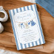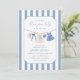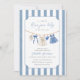 Celebrate the joyous arrival of your little girl with our "Blue Jean Baby" baby shower invitation. This charming card features soft denim details like cute baby clothes and trendy stripes as background.