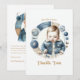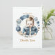 Send a heartfelt thank you in rustic country-chic style with this Blue Jean Baby themed thank you card! Featuring an adorable baby in a cosy denim jacket, surrounded by stitched details, buttons, and fabric textures, this design captures the warmth of a vintage Americana baby shower. The editable message on the back allows you to personalise it with a special note to show your appreciation. Perfect for a denim-themed, western, or rustic baby shower celebration!