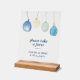 This gorgeous acrylic favours baby shower sign is part of the Blue Jean Baby collection. Provide your guests with that cosy and casual baby shower atmosphere, while also directing them. All the text is customisable to match your occasion perfectly ↣ just click the 'Personalise' button. Available in multiple sizes, and with or without the wood block. Can also be used as a Books sign if your shower includes Book for Baby!
