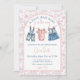 Celebrate the arrival of your little angel with this charming watercolor. Beautiful baby clothes hang delicately on a clothesline, framed by a soft, dusty rose border and a scalloped arch. This elegant and poetic illustration will add a touch of sweetness and style to your baby shower invitation.