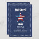 A stylish, denim invitation with white border stitches. It features a big start with the American flag pattern. This patriotic invitation is great for any national holiday, soldier's welcome home party, military retirement and more.