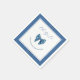 This delightful baby girl shower paper napkin design offers a fresh take on traditional themes. The clever use of a blue jean texture as a backdrop, complete with the visual detail of white stitching, instantly establishes a playful yet stylish vibe. The focal point is the square "patch" motif, outlined with more stitching and adorned with an adorable denim coquette bow, adding a sweet and homespun touch.