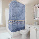 Blue jeans sew closeup texture. shower curtain