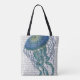 Blue Jellyfish 1 by Fab Funky. Features a beautiful blue floating jellyfish with a book page for a background.|191847D