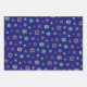 Blue Jewish Stars Design Wrapping Paper Set in blue, gold and turquoise.