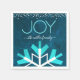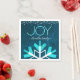 “Joy.” A fun, playful, giant faux turquoise blue foil and white snowflake illustration and modern typography on a rich, deep teal blue marble watercolor background help you usher in the holiday season. White confetti and turquoise dots frame complete the look. Feel the warmth and joy of the holidays whenever you use this stunning, modern, graphic, custom name napkin. Matching cards, envelopes, stickers, tote bags, wrapping paper, pillows, home décor, and more are also available. Makes a festive addition to your party!