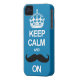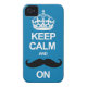 Blue Keep Calm and Carry On Moustache iPhone Case