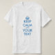 Blue Keep Calm t shirt | Personalizable template. Keep calm and carry on t-shirt maker. Customisable KeepCalm t-shirt with royal blue letters. Customise crown and text with your own funny quote or humourous saying. Design your own shirt easy and quick.