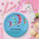 Summery blue kite surfing theme paper plates with customisable text. Brightly coloured kites in reds, blues, yellows and green adorn the plates.