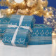 Blue knitted Background with penguins. Vector illustration. © and ® Bigstock® - All Rights Reserved.