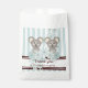The product design features baby twin koalas surrounded by flowers. The adorable animal cartoon with pastel blue stripes makes cute and unique favour bags for boy twin baby shower, birthday, and more!