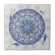 Digital abstract in shades of blue and palest peach, an abstract lattice-look Lotus mandala surrounding another created by a cluster of Koi fish with a tiny dharma wheel at the centre. Order as-is, use as a trivet, or place it on a trinket box.