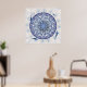 Digital abstract in shades of blue and palest peach, an abstract lattice-look Lotus mandala surrounding another created by a cluster of Koi fish with a tiny dharma wheel at the center.