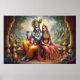 Blue Krishna Art: Radha & Deity Flute, Indian God Poster