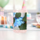 Set of floral themed can glasses that features the photographic image of a lovely, blue Lacecap Hydrangea bloom. Image is printed on one side of glass only. Perfect for serving beer, sodas, lemonade, ice tea and more at parties, showers, etc. Available singly or as sets.