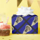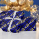 Lacrosse gift wrap featuring lax stick motif on team blue background.