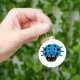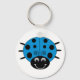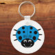 A cute blue cartoon ladybug on a round keychain.