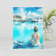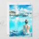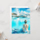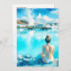 This postcard features a watercolor portrait of a blonde woman looking out at the Blue Lagoon in Iceland.