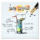 Blue Lagoon alcoholic beverage bartending ingredient list graphic. Sketch pen and graph paper in the background. Sounds refreshing and yummy! Perfect gift for the Blue Lagoon drinker.