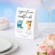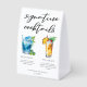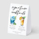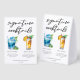 This chic beach signature cocktails table tent sign features simple black typography above 2 seaside drinks and their ingredients for your coastal wedding bar. A cute Blue Lagoon and Piña Colada drawing add a cool flair to your bar menu. Complete with the couple's names and date for their reception.