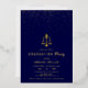 Gold confetti Law School Class of 2026 blue graduation foil invitation. Honor the remarkable achievement of your Class of 2026 Law School graduate with these customized navy blue invitations featuring gold foil accents. These invitations prominently feature the iconic gold scales of justice, a classic emblem of the legal profession, subtly indicating the graduate's career path. The invitations are enhanced by delicate gold confetti at the upper part, adding a refined touch to the overall design.