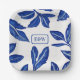 Blue Leaf Pottery Motif with Paired Initials Paper Plate