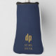 Personalised golf putter head cover. Your initials are lettered in modern oversized typography and you can also add either your name or your golf club's name. The design is printed with a leather textured look background in blue.
