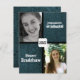 Upload your own photos to this western-style graduation announcement and party invitation, featuring image of blue tooled leather. Set for 2015, but you can change it to any date using the easy template.
